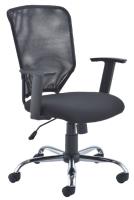 Perfect for use in home offices, this low back operator chair has a breathable mesh back with adjustable arms for comfort. It has a padded foam seat with a textured covering and a chrome base for style and stability.